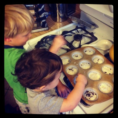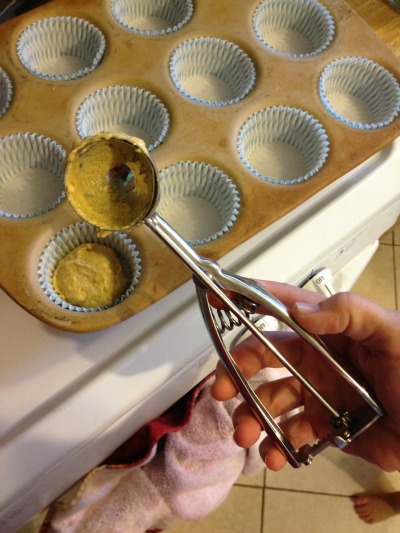 Scoop into muffin cups. Have you ever used these scoopers before? I got mine from Pampered Chef. If you don’t have one, I suggest running out to the store to get one immediately.