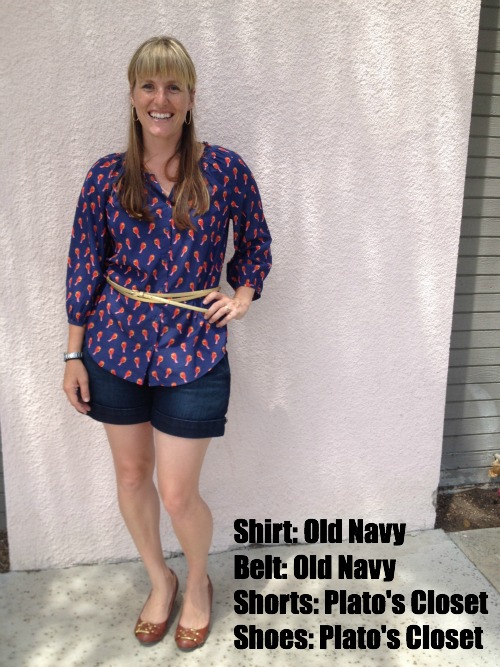 The blouse looks very cute on Kerry. I like how she dressed it up with the belt. I like the dress you have on from Plato’s Closet. It makes your arms look muscular. Heehee