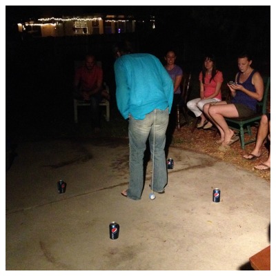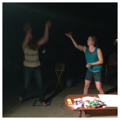 For entertainment, I “hosted” a Minute to Win It Challenge. The original title is a TV show (although I’ve never seen it). The point of the NBC show is that the contestants do crazy things and if they are able to complete the tasks in under a minute, they win an absurd amount of money.