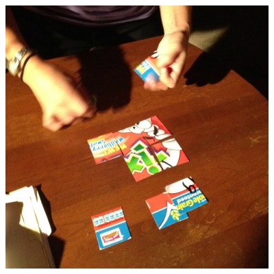 Breakfast Scramble-Contestants had to put together a 4 x 5 “puzzle” of pieces I had cut out of identical cereal boxes. (This was SUPER hard…especially since for some reason pieces of one puzzle were missing. Oops!)