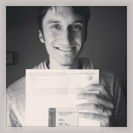 When we got home, my husband’s real estate license was there waiting for us. Yahoo!