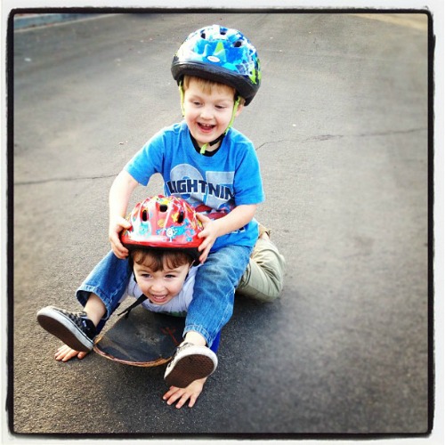 It astounds me that my sons will run towards an object at full speed and don’t ever slow down until they hit it with their heads. Every time I think they will slow down before they get to it, but every time they continue right into their desired target, usually me (see below).