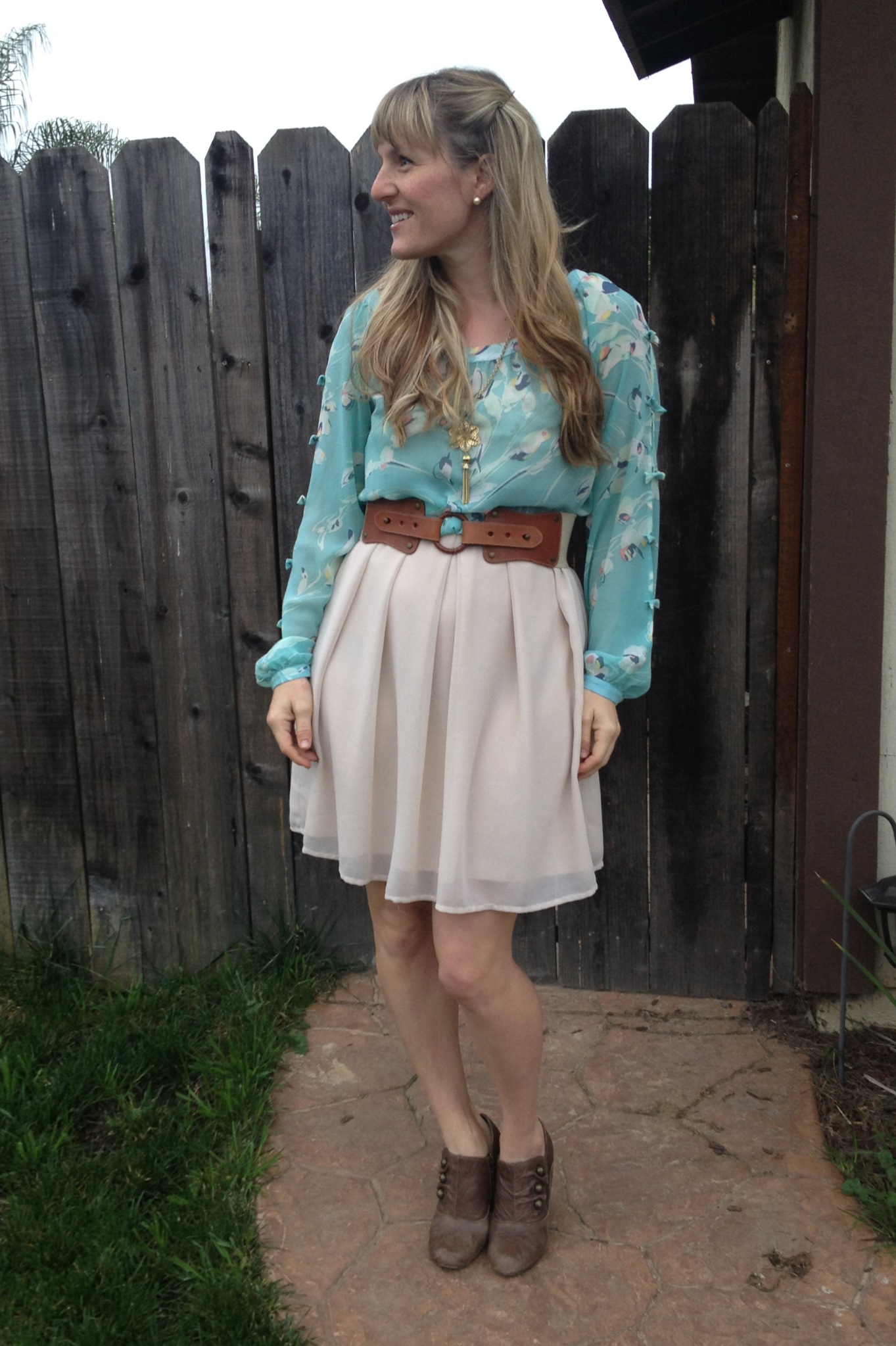 Shirt: Plato’s Closet (Lauren Conrad), Dress: Plato’s Closet, Necklace: Cookie Lee, Belt: Lands End Canvas, Shoes: Amvets (Seychelles)