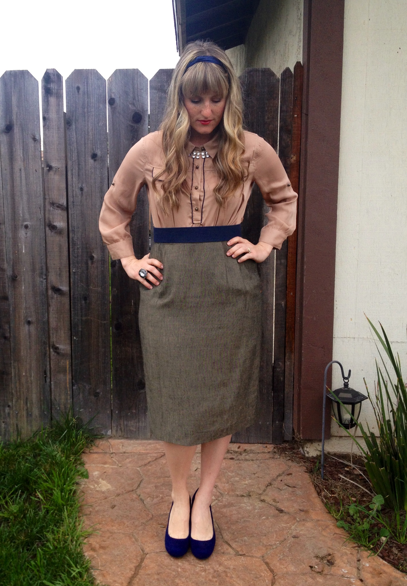 I feel so old-fashioned in this outfit. Like I should be leaning on a desk with a Steno-pad taking notes for my Mad Men boss.
