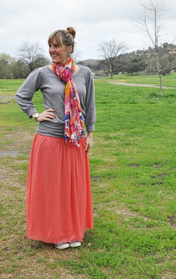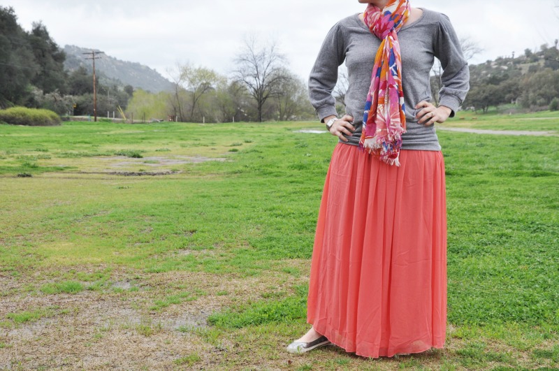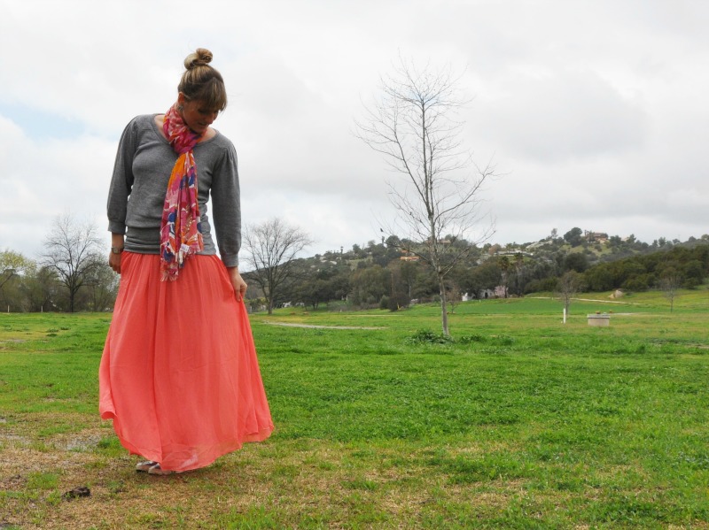 I have dreamed about a long, flowy maxi skirt in an orange-ish pink color for awhile, but couldn’t find one anywhere.