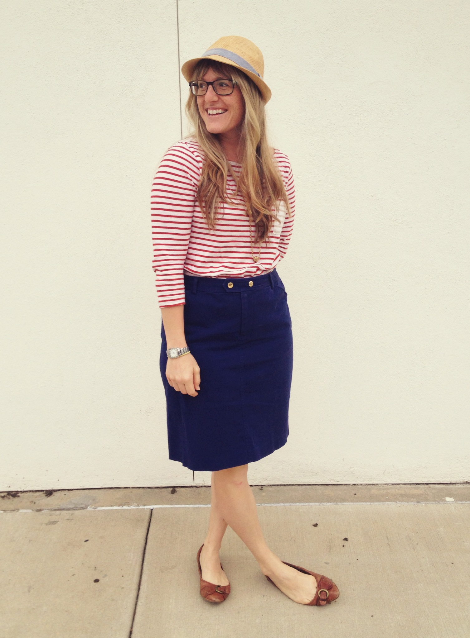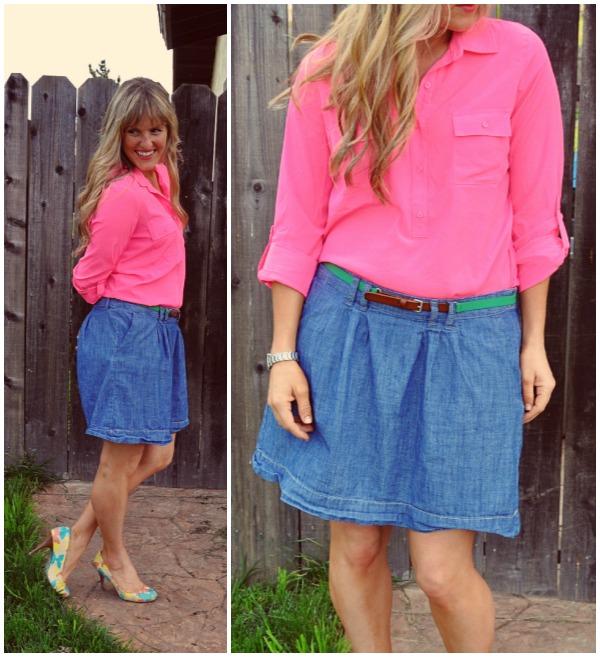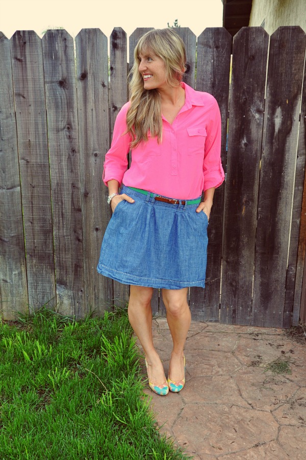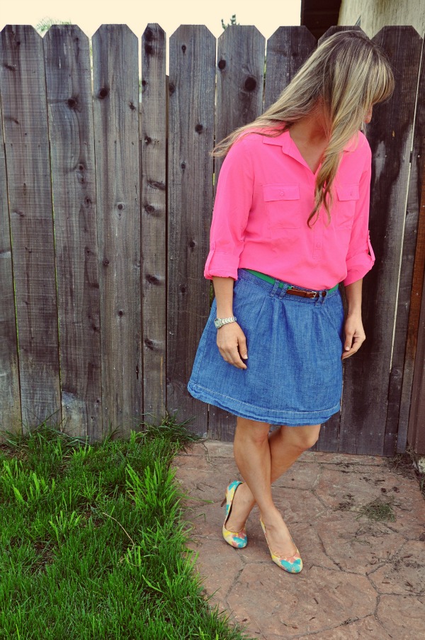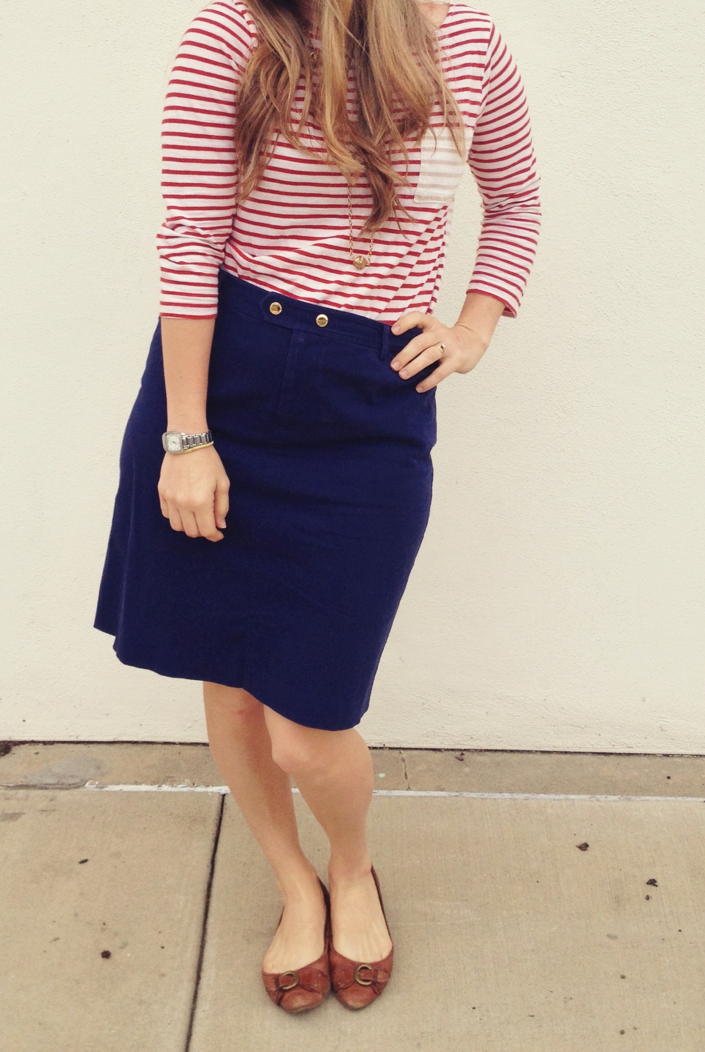 (Shirt: Old Navy  Skirt: Old Navy  Belt: Ann Taylor Loft  Shoes: Goodwill-Jessica Simpson)