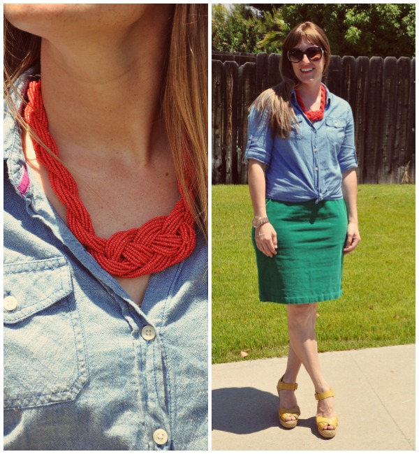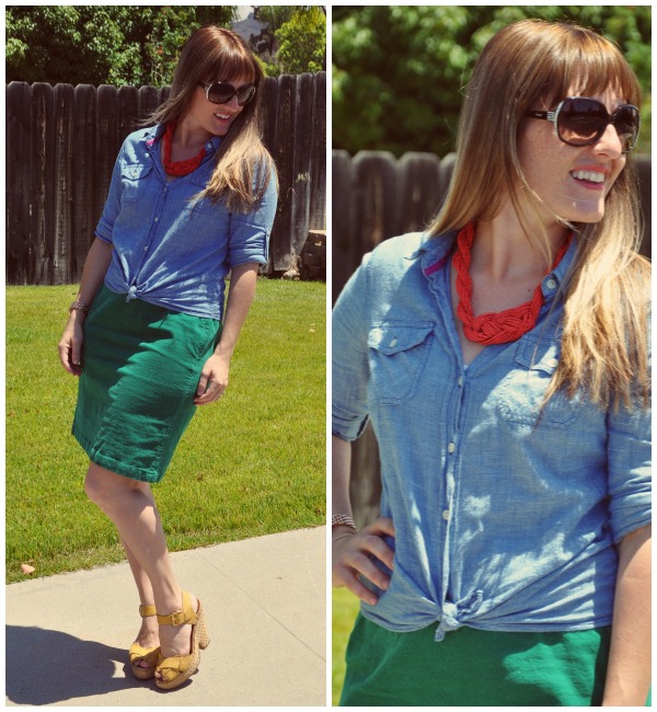 Green Skirt Collage 2(Sunglasses: Ross (Fossil)  Necklace: veryjane.com  Shirt: Target  Skirt: Old Navy  Watch: Target  Shoes: HandMeDown (Top Shop))