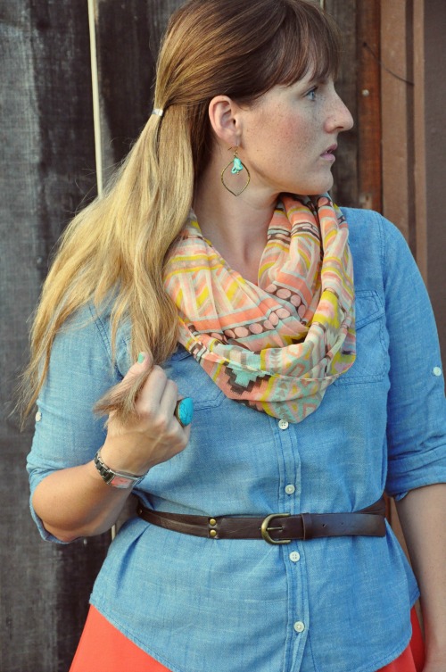 (Earrings: HandMeDown Scarf: Thrifted Shirt: Target Dress: Old Navy Shoes: Thrifted)