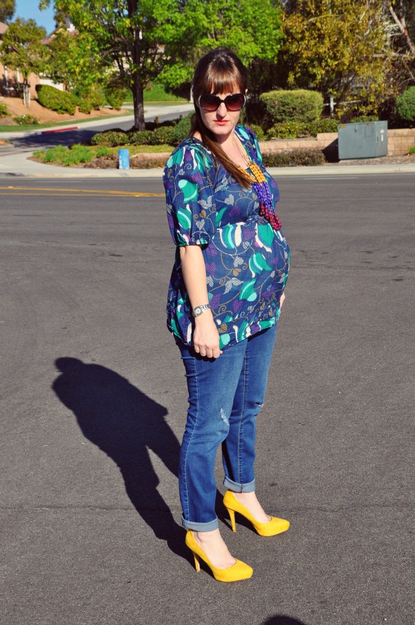 (Earrings: Noonday Collection Scarf: Target Sweater & Dress: Old Navy Maternity Boots: eBay-Lucky Brand)