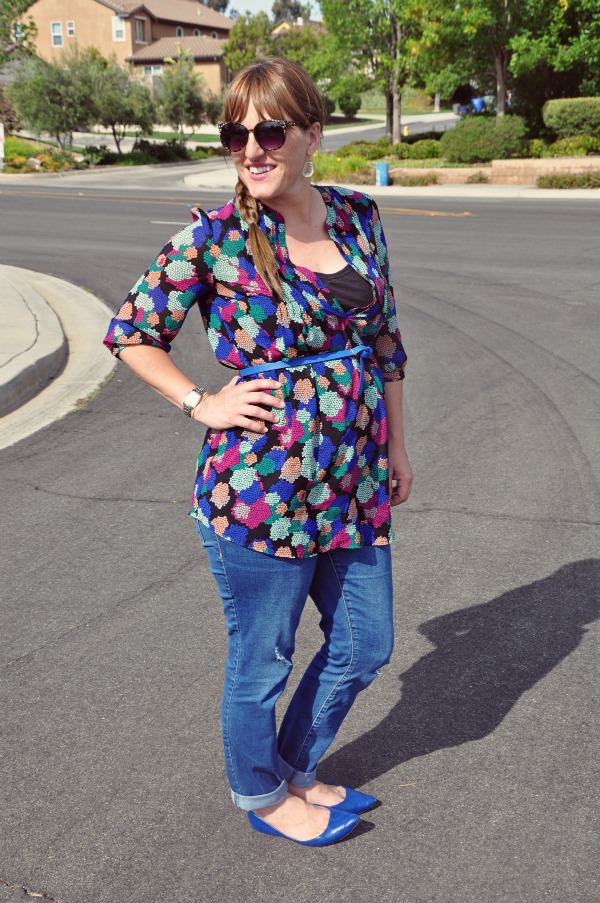 (Earrings: Cost Plus Shirt: Plato’s Closet Jeans: Old Navy Maternity Shoes: instagram shop)