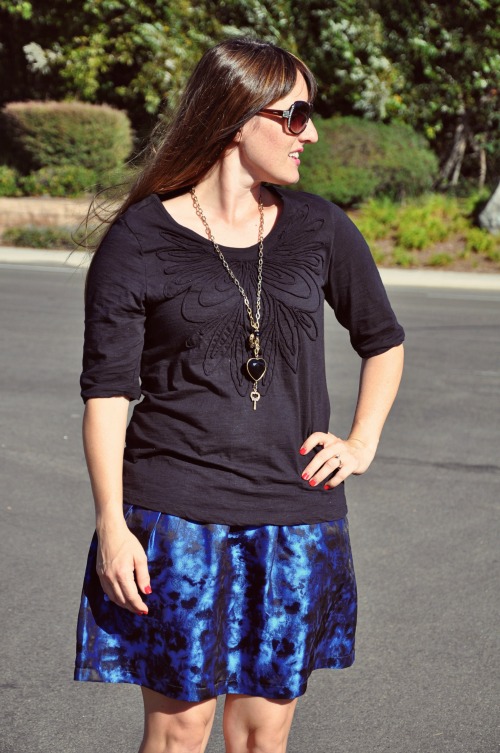 (Shirt: clothing exchange Necklace, Skirt & Shoes: Plato’s Closet)